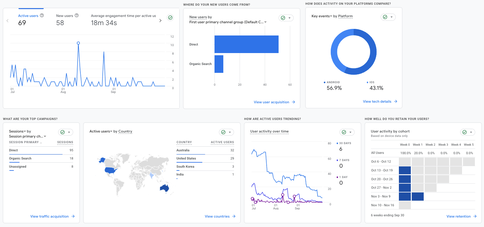 - Analytics Tools: Incorporating in-game analytics (e.g., Unity Analytics or Google Analytics) to track player behaviour is invaluable when testing with larger groups. Monitoring engagement, progression, and drop-off points can inform you about aspects of the game that may need improvement, and designing analytics to test your hypotheses can be incredibly effective. You could also consider monitoring: